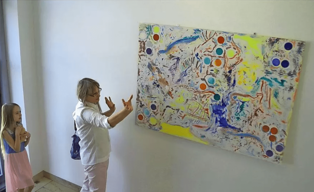 Die Gemälde fallen durch besonders kräftige und leuchtende Farben auf und geben der Tagesklinik im HELIOS St. Elisabeth Krankenhaus in Bad Kissingen nun ein neues freundliches Erscheinungsbild. Zu sehen sind unterschiedliche Stilrichtungen, u. a. moderne geometrische und figurative Bilder, die durch linierte Zeichnungen, Formen und Farben entstehen.