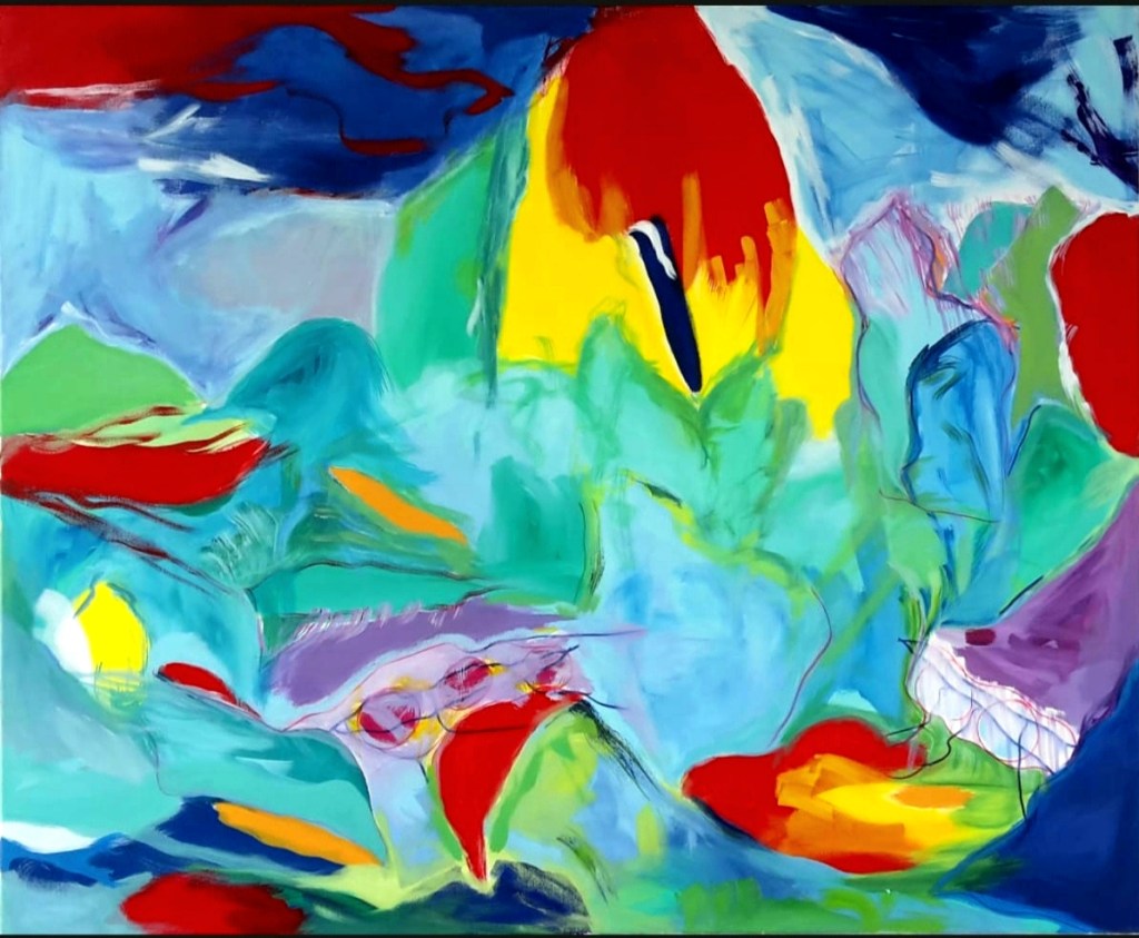 Elisabeth Sabo zeigt in der Kurhaus-Galerie in Bad Wörishofen großformatige, abstrakt expressionistische Acrylgemälde. Sohn Christopher ist mit dabei – mit abstrakten Werken in schwarz-rot mit Goldtönen sowie farbenfrohen Bildern.